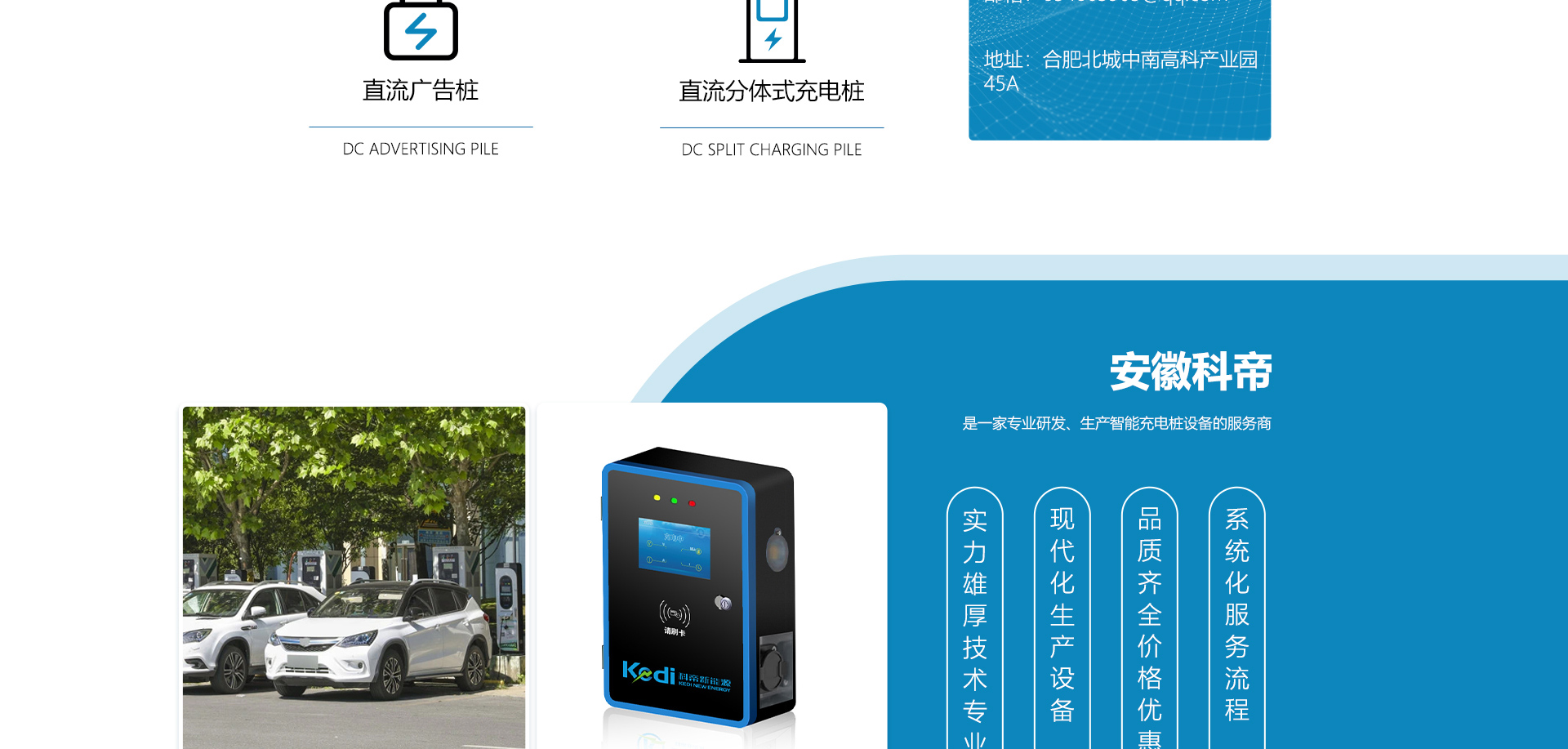 關(guān)于我們安徽科帝新能源科技有限公司坐落于安徽省會(huì)-合肥,是一家研發(fā)、生產(chǎn)智能充電樁設(shè)備,汽車充電站后臺(tái)監(jiān)控管理系統(tǒng)和生產(chǎn)高壓開(kāi)關(guān)設(shè)備的企業(yè).由專門的研發(fā)團(tuán)隊(duì)、管理團(tuán)隊(duì)按照現(xiàn)代化企業(yè)制度規(guī)范設(shè)立的有限責(zé)任公司。致力于為能源智能、安全的應(yīng)用和節(jié)能減排提供整體的技術(shù)與產(chǎn)品解決方案??频奂邪l(fā)、設(shè)計(jì)、生產(chǎn)、銷售以及服務(wù)于一體,在電動(dòng)汽車充電方案,充電設(shè)施建設(shè)和城市配電方面擁有廣泛的技術(shù)研究及經(jīng)驗(yàn)積累,為客戶提供安全、智能的充電設(shè)備及充電運(yùn)營(yíng)站建設(shè)一體化解決方案。并堅(jiān)持以人為本、質(zhì)量為先、顧客至上、不斷創(chuàng)新”的企業(yè)理念,為能源行業(yè)的發(fā)展、節(jié)能減排做出重大的貢獻(xiàn)。公司擁有豐富的產(chǎn)品種類,目前科帝已研發(fā)生產(chǎn)了三十多種產(chǎn)品,充電設(shè)備有直流一體式充電樁、直流分體式充電樁、直流廣告樁、交流廣告樁、廣告一體樁、壁掛交直流樁;等多種充電設(shè)備;每一款產(chǎn)品都是精心打造,力求為客戶提供優(yōu)越的用戶體驗(yàn)。展望未來(lái)科帝將通過(guò)持續(xù)的自...
